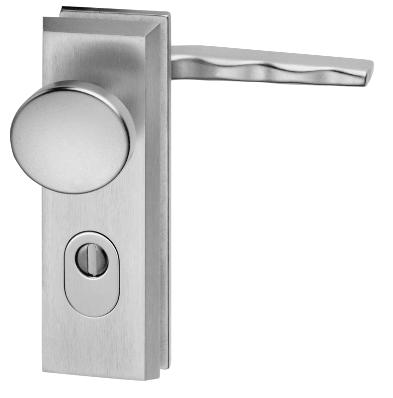 Vollblatt Sicherheits-Wechselgarnitur Alpha 8651,Kurzschild,ES 1,mit Zylinderabdeckung 72/8,DIN Links-Rechts,naturfarben eloxiert,Türstärke35-45,rund/Fingerform gekröpft fest