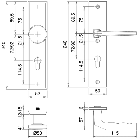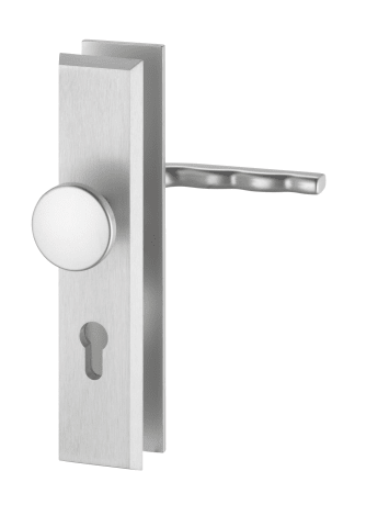 Schutz-Wechselgarnitur 8674H, mit Langschild und geradem Knopf, PZ, Schutzklasse ES1, Aluminium. Eigenschaften: • Material: Aluminium eloxiert • Drücker-Lagerung: lose • Stütznocken: M6, Ø 10 mm anbo