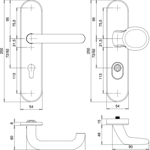 • Schutz-Wechselgarnituren 8755Z mit Griffknopf K2 DIN 18257 mit Drücker 2200 (ES1) • Alu/Edelstahl-Clip-Deckschilder auf Druckguss-Unterkonstruktionen • Außenschild mit Stahl-Anbohrschutz • Verdeckte