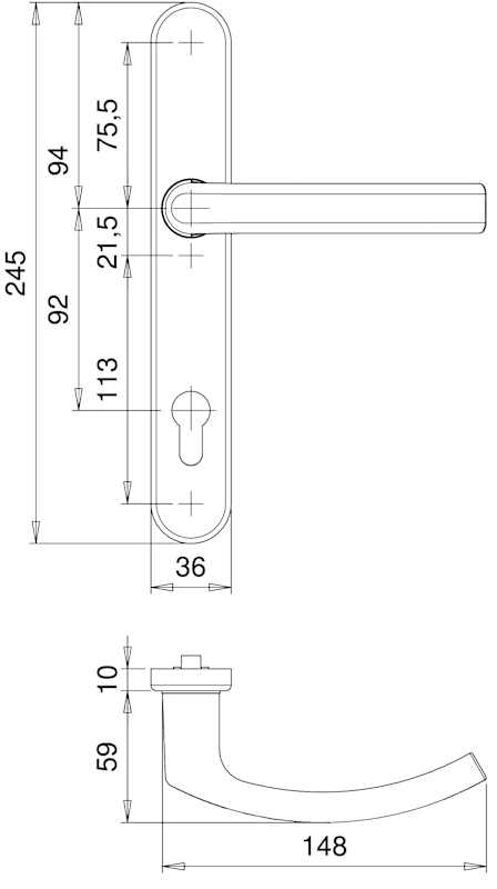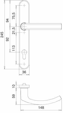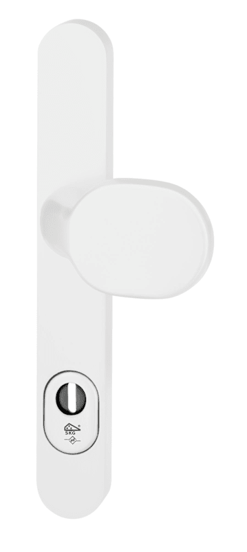 Rohrrahmen Sicherheits-Wechselgarnitur Kronos 2001/2545,Langschild,mit Zylinderabdeckung 92/8,DIN Links-Rechts,verkehrsweiß beschichtet,gekröpft/gebogen fest
