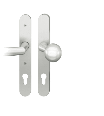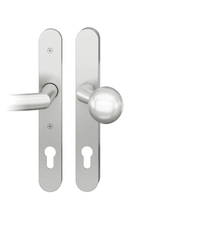 FSB, Feuerhemmend-Schutz-Wechselgarnitur, Abdeckung: mit Langschild,Modellnummer: 73 7330, Lochung: Profilzylinder gelocht, Entfernung: 92mm, Vierkant: 9mm, Material: Aluminium, Farbe: weiß, Farbton: verkehrsweiß, Oberfläche: lackiert, DIN-Richtung: DIN Links-Rechts, Lagerung: Ausgleichslager®, Befestigungsart: durchgehend verdeckt verschraubt, Befestigungstechnik: mit Stütznocken, Befestigungssystem: Stiftverbindung, Ergänzung: ohne Zylinderabdeckung, Eigenschaft: Knopf fest auf Schild, Schildbreite außen: 35mm, Schildbreite innen: 35mm, Schildlänge außen: 245mm, Schildlänge innen: 245mm, Knopfhöhe: 84,5mm, Knopfdurchmesser: 50mm, Anschlagrichtung: Drücker rechts/links verwendbar, Drückerbefestigung: Stabil-Wechselstift mit Rolle, Form: oval, Schildstärke außen: 13,5mm, Schildstärke innen: 7mm, Türstärke min.: 53mm, Türstärke max.: 57mm, Türart: Abschlusstüren, Rahmentüren,Türwerkstoff : Aluminium, Kunststoff, Stahl, Benutzerklasse: Klasse 4, Widerstandsklasse: ES1, Norm: DIN 18273, DIN 18257, DIN EN 1906, Zulassung: für Feuerschutz, für Rauchschutz