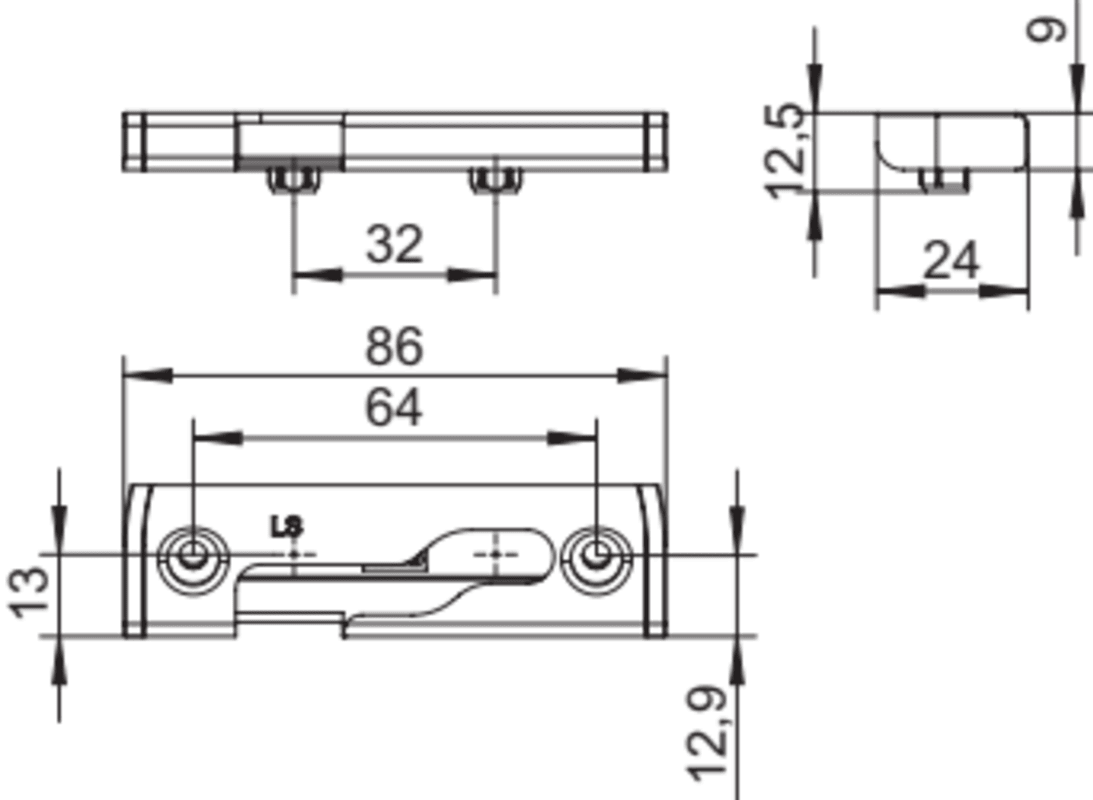 WINKHAUS Sicherheitsschließblech SBS.H.PAD.13-24.Z8; Material: Stahl; Befestigungsart: zum Anschrauben; Einsatzbereich: Drehkipp; Basis: Sicherheitsschließblech; DIN-Richtung: DIN Links; Farbton: schw