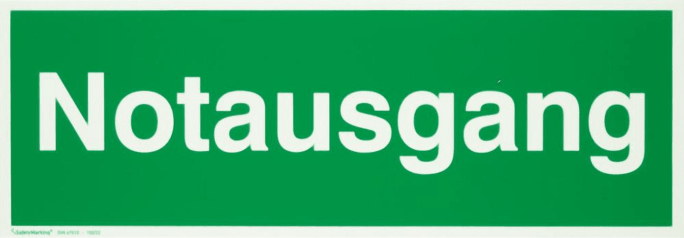 Rettungsschild, Notausgang • Langnachleuchtend, DIN 67510-4 Unterklasse C