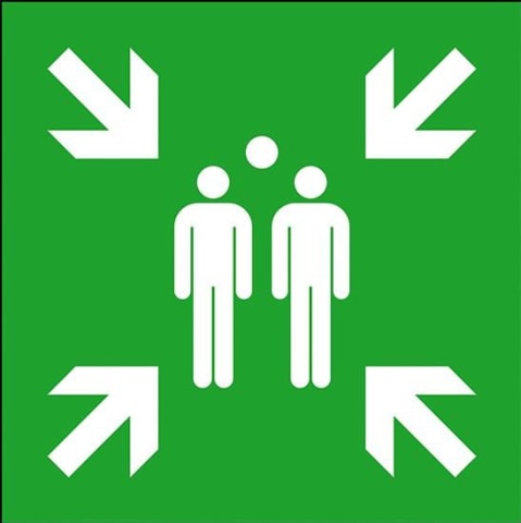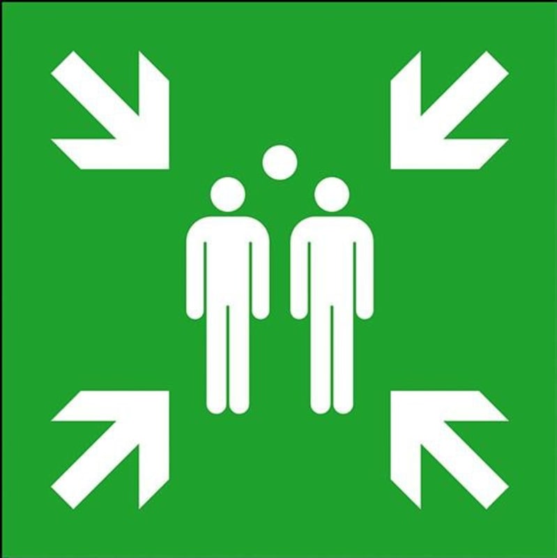 Rettungsschild, Sammelstelle • ASR A1.3 E007 • DIN EN ISO 7010 E007 • Langnachleuchtend, DIN 67510-4 Unterklasse C