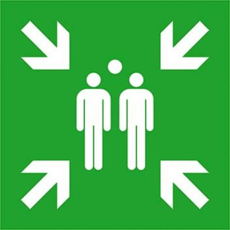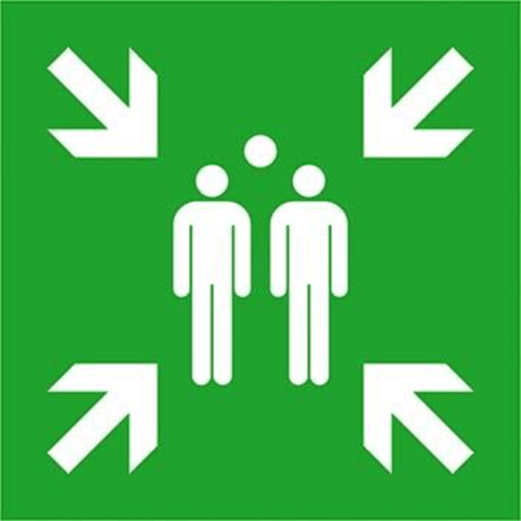Rettungsschild, Sammelstelle • ASR A1.3 E007 • DIN EN ISO 7010 E007 • Langnachleuchtend, DIN 67510-4 Unterklasse C