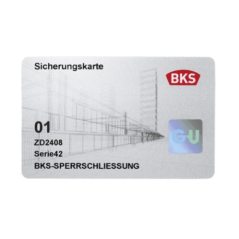 BKS Sicherungskarte B 3900; Ausführung: Rueckseitig bedruckt,mit Hologramm; Anwendung: für Profilzylinder; Einsatzbereich: Profilzylinderzubehör; Basis: Sicherungskarte; Material: Kunststoff
