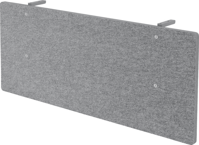 Akustik-Knieraumblende, ohne Rahmen • Material: Schallschutzvlies, 25 mm stark, grau meliert, Filzoptik • Schwer entflammbar gemäß DIN 4102 (B1) • Schallschutzklasse C • Montage: erfolgt über 2 Halterungen an der Hinterseite vom Schreibtisch Lieferung: Inkl. Halterung. Hinweis: Als Sichtschutz unter der Schreibtischplatten mit min. 25 mm Stärke. Nicht zusammen mit Kabelwanne montierbar!