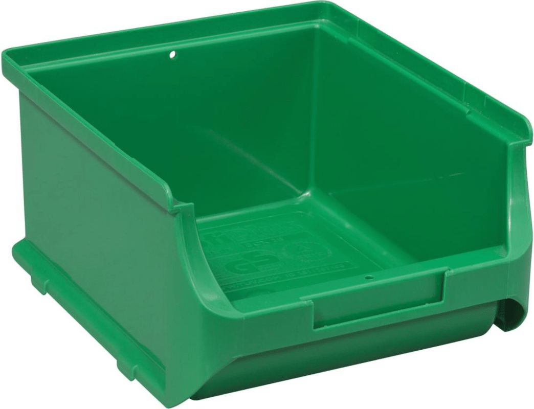 Lagersichtbox ProfiPlus • Material: hochschlagfestes Polypropylen • Schwere Industriequalität • Hohe Belastbarkeit durch stabiles Formdesign • Temperaturbeständig: –10 bis +60 °C • Beständig gegen Fette, Öle, Harze, Laugen etc. • Glatter Unterboden, für Transportbänder geeignet • Recycelbar
