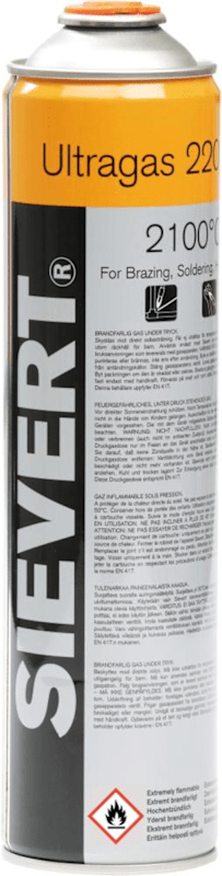 Druckgasdose Ultragas• Maximale Flammtemperatur 2100 °C • Passend zu Lötlampe Powerjet Ultra 2335Signalwort: GefahrGefahrenhinweise:H280: Enthält Gas unter Druck, kann bei Erwärmung explodieren;H220:
