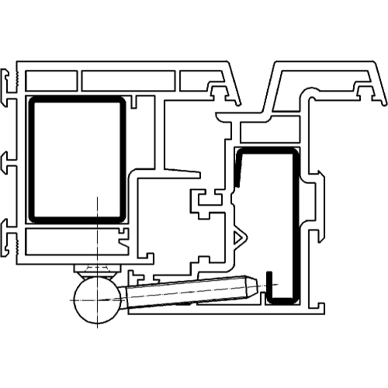 Für Kunststofffenster mit Drehflügel. Hinweis: Ausführung mit Flügelzapfen 7 x 44 mm für Profile mit niedrigem Überschlag. Anschlagtechnik auf Anfrage.