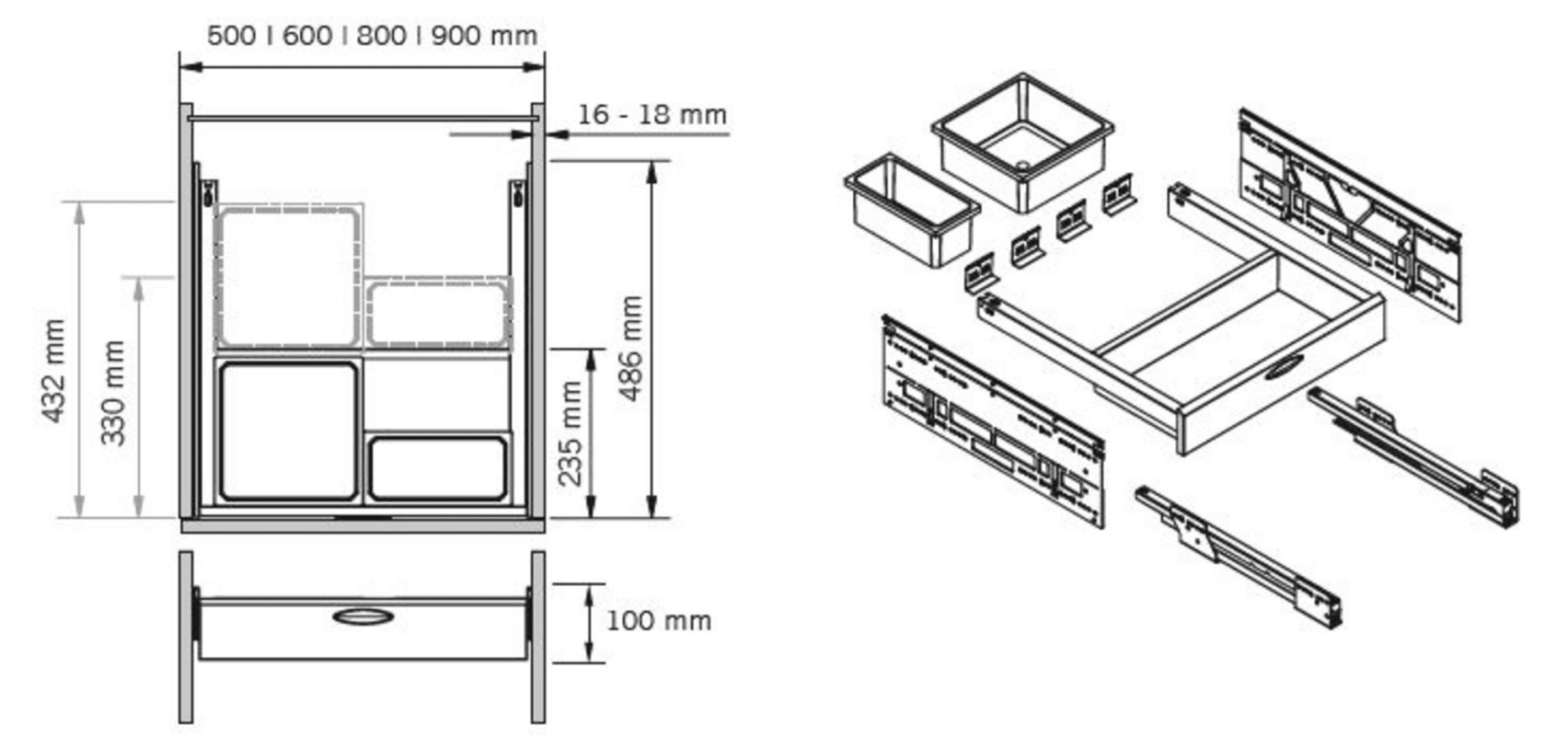 VS ENVI® Drawer Organisationsschublade- EasyFit: werkzeuglose Montage der Schublade und Behälteraufnahmen- integrierte Einbauschablone: kein Messen beim Einbau im Korpus notwendig- integrierte Dämpfun