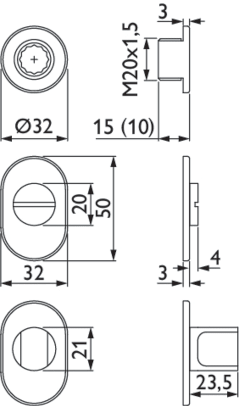 Hermat Schlüsselrosette 2401/OVAL/SET,oval,WC/S (8), 3mm,F4