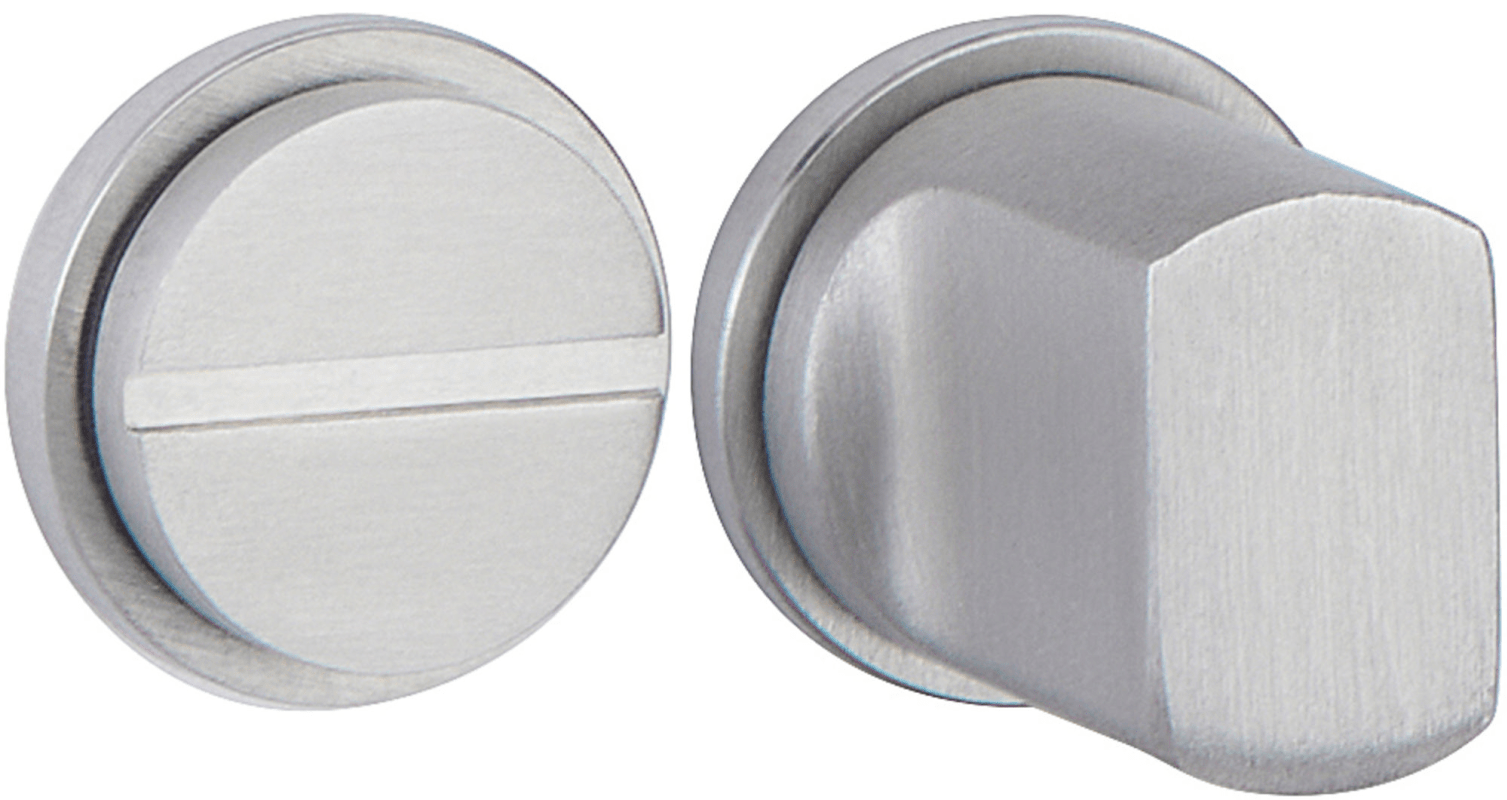 Smart XXS 23,5 - Rosettenpaar rund - Bad, ohne Unterkonstruktion / für Türbohrung 20 mm Ø, mit Riegel und Schlitzscheibe, Rosettendurchmesser 23,5 mm, Oberfl. 60 (Edelstahl matt)
