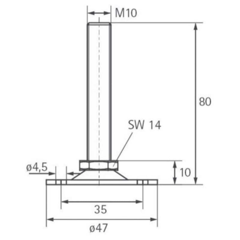 SOCKELVERSTELLSCHRAUBE M10 X 80 MM CHROMATIERT 7021.180 VE=50