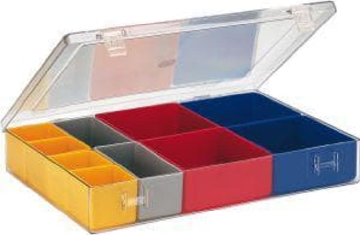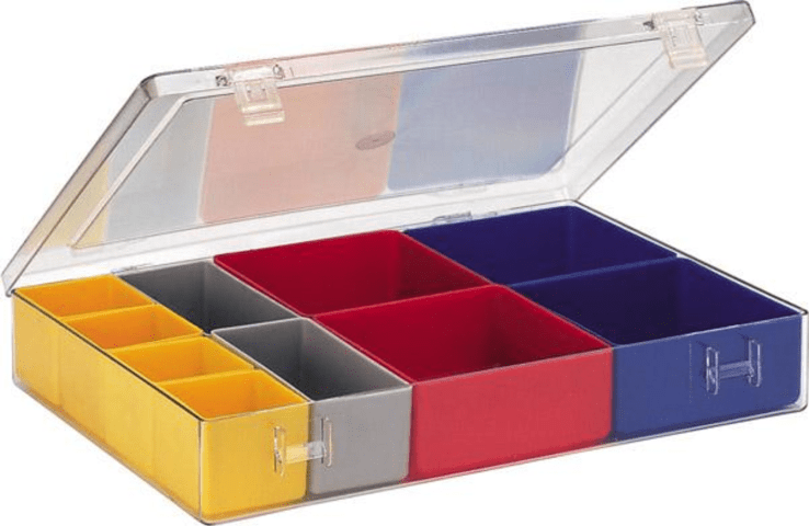• Bestückt mit farbigen Einsatzkästen in unterschiedlichen Größen