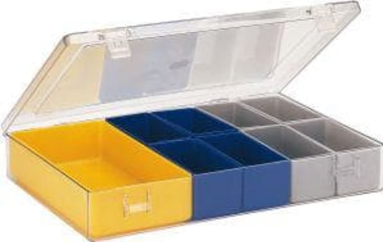 • Bestückt mit farbigen Einsatzkästen in unterschiedlichen Größen