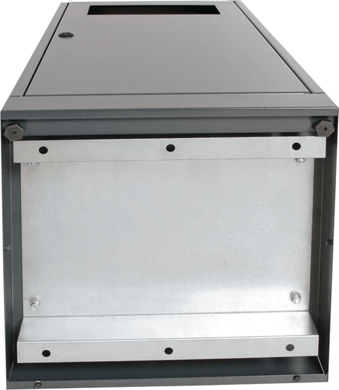 • Frontseite: Flügeltür mit Vierkantverriegelung