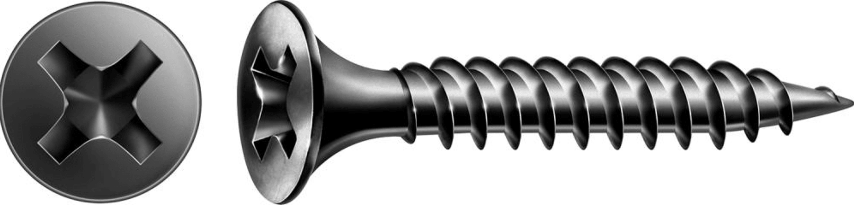 Schnellbauschraube, Feingewinde, GIX A• Phosphatiert, schwarz • Trompeten-Senkkopf mit Kreuzschlitz H2-Antrieb • Nadelspitze • Langbandsystem für Magazinschrauber • GIX A Feingewinde • für Meta