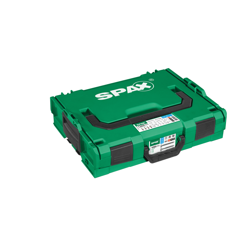 Unsere komplette Schraubenbox enthält 1.065 Schrauben in 17 verschiedenen Abmessungen, alle ausgestattet mit unseren Innovationen Senkkopf, T-STAR plus und Edelstahl rostfrei A2-Ausführung. Dazu finden im modular gestaltbaren Innenraum auch 5 SPAX Bits in T-STAR plus-Ausführung Platz. Die L-BOXX Edelstahl lässt sich mit weiteren L-BOXXen aus unserem Sortiment per Klickmechanismus verbinden und passt ebenso perfekt in eine Fahrzeugeinrichtung von Bosch Sortimo. Das bedeutet für Sie: Nie wieder Schrauben suchen, Sie haben alle wichtigen Abmessungen immer ordentlich und griffbereit zur Hand. Mit einer passenden Fahrzeugeinrichtung ist der Transport absolut sicher.