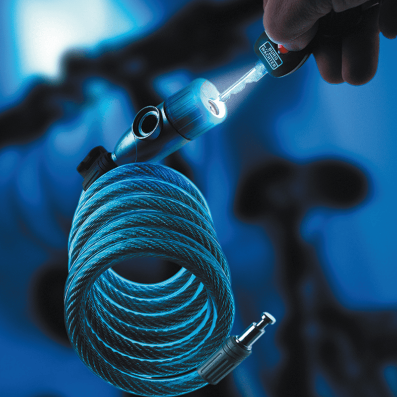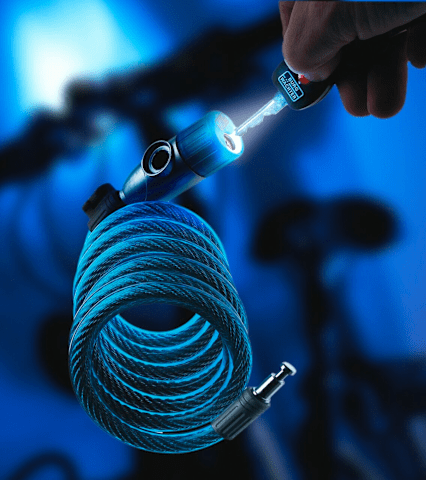 Starkes Spiralseilschloss mit beleuchtetem Schlüssel ist praktisch und genial und mit Halterung für Fahrräder.