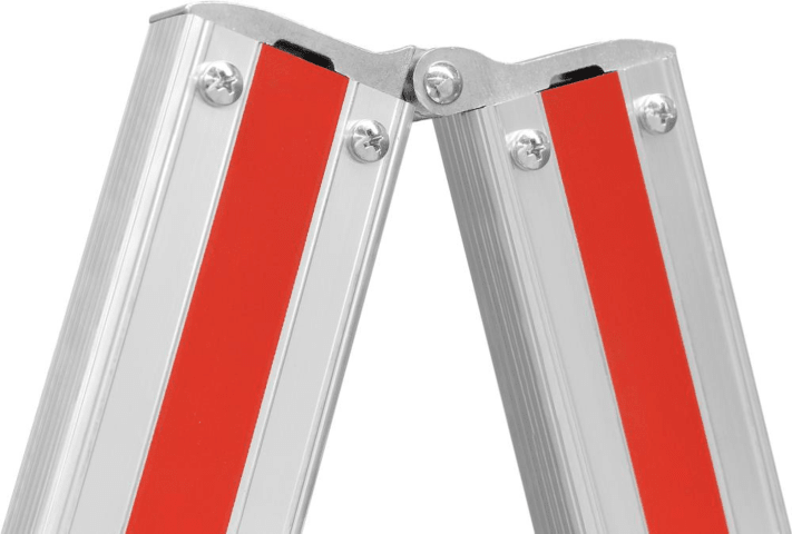 Sprossenstehleiter, beidseitig begehbar, Strangpressprofil • Material: Aluminium • Sprossen: aus Strangpressprofil, erhöhte Rutschfestigkeit • Sprossentiefe: 30 mm • Aluminium-Scharniere, verschraubt, auswechselbar • Spreizsicherung durch hochfeste Perlongurte, 30 mm breit • Leiterfüße: mit Holm verschraubt, leicht auswechselbar, im Anstellwinkel mit großer Auflagefläche Hinweis: Zur TRBS-konformen Verwendung als Arbeitsplatz ist bei Sprossenleitern entsprechendes Zubehör wie Einhängetritte zu verwenden.