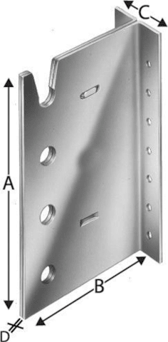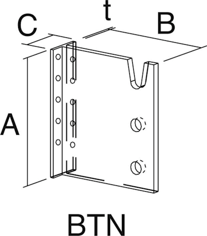 Balkenträger BTN• Schlitzbreite: 7–8 mm • Löcher: Typ 90: Ø 5 mm / Ø 8,5 mm Typ 120-240: Ø 5 mm / Ø 13 mm • ETA-07/0245