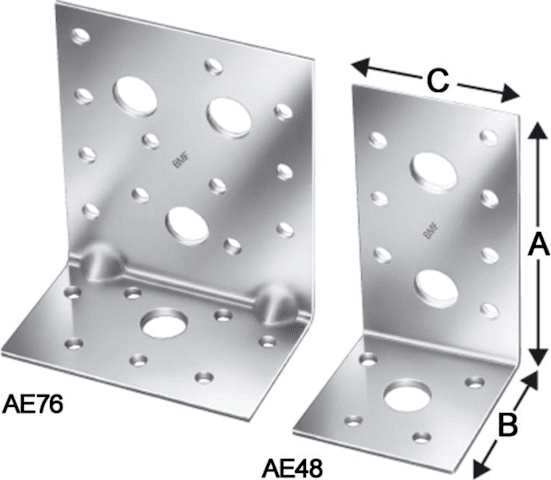 Winkelverbinder AE• Befestigung: CNA Kammnägel Ø 4 mm / CSA Schrauben Ø 5 mm / Bolzen • Löcher: Ø 5 mm / Ø 13 mm • ETA-06/0106