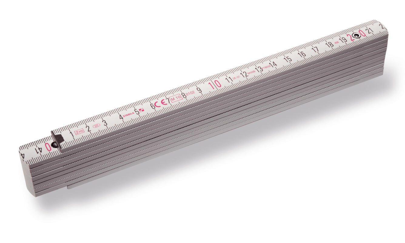 Holz-Gliedermaßstäbe Serie 400. Vorteile, die klar ins Auge fallen: Größere schwarze und rote Ziffern für noch bessere Ablesbarkeit auch an schwer einsichtigen Stellen und bei schlechten Lichtverhältnissen. Eingelassene, hochwertige Federstahlgelenke, die eine durchgehend gerade Kante der ausgeklappten Glieder ergeben. So ist der Maßstab gleich als Lineal für eine durchgezogene Anrisslinie zu verwenden. Mit CE- und Metrologiekennzeichnung sowie EG-Baumusterprüfbescheinigung.