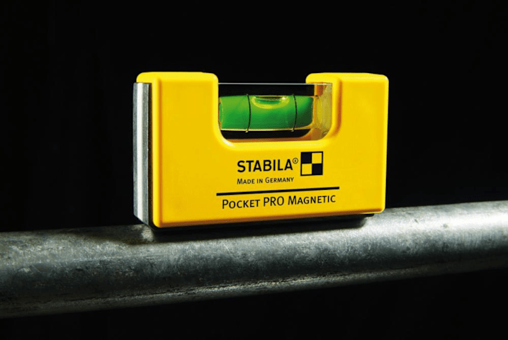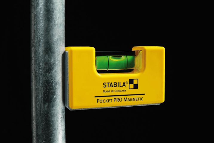 Wasserwaage Pocket PRO Magnetic• Kunststoffgehäuse • Aluminiumrahmen mit V-Nut • Mit 1 Horizontallibelle • Ermöglicht Vertikalmessungen mit der Horizontallibelle • Mit extrastarken Seltenerd-Magne