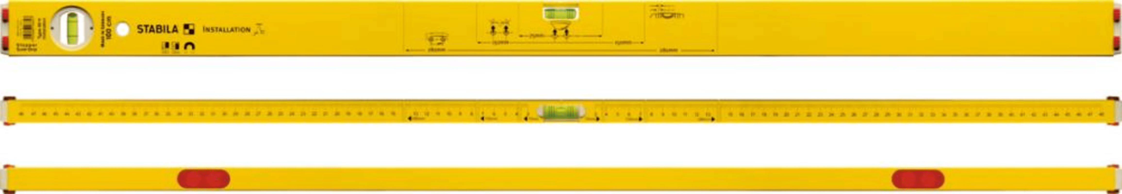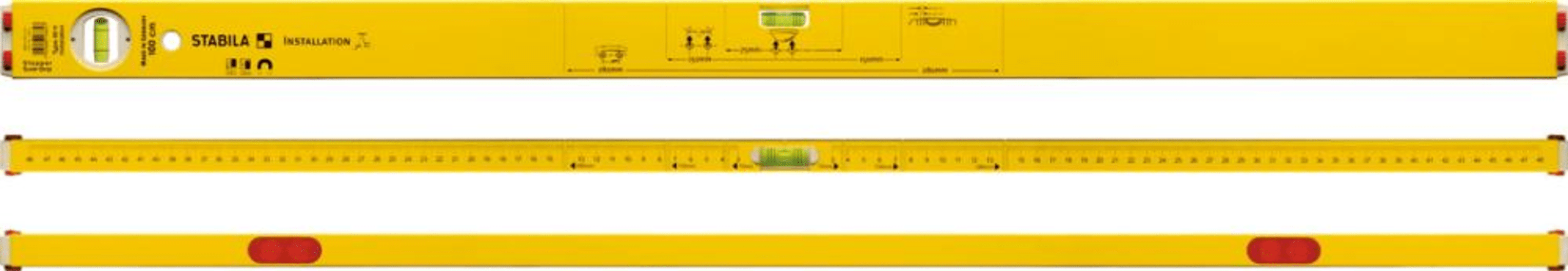 Wasserwaage Type 80 M Installation• Aluminium-Rechteckprofil • Mit 1 Horizontal- und 1 Vertikallibelle • 6-Ring-Horizontal-Libelle: Für das Anlegen von 1 % und 2 % Gefälle • Mit extrastarken Selten