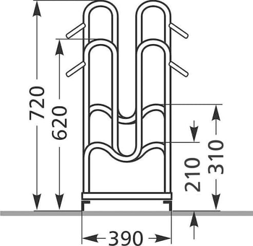 Standparker, zweiseitige Radeinstellung • Bietet die best mögliche Standsicherheit für Fahrräder • Vorderrad wird an drei Punkten gehalten • Austausch von Bügeln bei Bedarf (z. B. Beschädigung) möglich • Material: verzinkte Stahlkonstruktion aus Rundrohrbügeln • Radabstand: 350 mm • Stellraumtiefe Radstellung 90°, zweiseitig: ca. 3200 mm Lieferung: Zerlegt, Montagematerial und Anweisung beiliegend. Hinweis: Vorbereitet zur Reihenverbindung und Bodenbefestigung. Bügelabstand für Reifenbreite bis 55 mm.