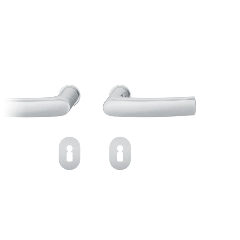 FSB Drückergarnitur 15 1015; Produkttyp: Drückergarnitur; Produkttyp (Hersteller): Steckgriff; Ausführung: Rosette; Befestigungsart Schlüsselrosette (außen): selbstklebend; Befestigungsart Schlüsselrosette (innen): selbstklebend; Befestigungstechnik: ohne Stütznocken; Montageart: aufliegend; Form Drückerrosette: rund; Form Schlüsselrosette (außen): oval; Form Schlüsselrosette (innen): oval; Vierkant: 8 mm; Material: Edelstahl; Form Türgriff (innen): gebogen; Form Türgriff (außen): gebogen; Breite Türgriff (innen): 22 mm; Breite Türgriff (außen): 22 mm; Länge Türgriff (innen): 122 mm; Länge Türgriff (außen): 122 mm; Höhe Türgriff (innen): 55 mm; Höhe Türgriff (außen): 55 mm; Durchmesser Drückerrosette (außen): 30 mm; Durchmesser Drückerrosette (innen): 30 mm; Höhe Drückerrosette (außen): 2 mm; Höhe Drückerrosette (innen): 2 mm; Breite Schlüsselrosette (außen): 30 mm; Breite Schlüsselrosette (innen): 30 mm; Länge Schlüsselrosette (außen): 46 mm; Länge Schlüsselrosette (innen): 46 mm; Höhe Schlüsselrosette (außen): 2 mm; Höhe Schlüsselrosette (innen): 2 mm; Einsatzbereich: Objekttür; Türart: Rohrrahmen,Vollblatt; Türwerkstoff: Aluminium,Kunststoff,Stahl,Holz; Lochung: Buntbart gelocht; DIN-Richtung: DIN Links-Rechts; Farbe: grau; Farbton: edelstahl; Oberfläche: fein matt; Material Unterkonstruktion (Schlüsselrosette): Kunststoff-Edelstahlverbundbau; Ausführung Vierkant: Vierkantstift; Türstärke min.: 39 mm; Türstärke max.: 48 mm
