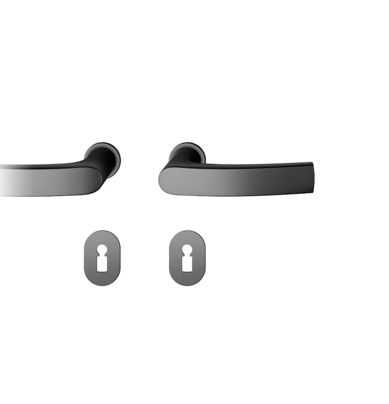 FSB Drückergarnitur 15 1015; Produkttyp: Drückergarnitur; Produkttyp (Hersteller): Steckgriff; Ausführung: Rosette; Befestigungsart Schlüsselrosette (außen): selbstklebend; Befestigungsart Schlüsselrosette (innen): selbstklebend; Befestigungstechnik: ohne Stütznocken; Montageart: aufliegend; Form Drückerrosette: rund; Form Schlüsselrosette (außen): oval; Form Schlüsselrosette (innen): oval; Vierkant: 8 mm; Material: Aluminium; Form Türgriff (innen): gebogen; Form Türgriff (außen): gebogen; Breite Türgriff (innen): 22 mm; Breite Türgriff (außen): 22 mm; Länge Türgriff (innen): 122 mm; Länge Türgriff (außen): 122 mm; Höhe Türgriff (innen): 55 mm; Höhe Türgriff (außen): 55 mm; Durchmesser Drückerrosette (außen): 30 mm; Durchmesser Drückerrosette (innen): 30 mm; Höhe Drückerrosette (außen): 2 mm; Höhe Drückerrosette (innen): 2 mm; Breite Schlüsselrosette (außen): 30 mm; Breite Schlüsselrosette (innen): 30 mm; Länge Schlüsselrosette (außen): 46 mm; Länge Schlüsselrosette (innen): 46 mm; Höhe Schlüsselrosette (außen): 2 mm; Höhe Schlüsselrosette (innen): 2 mm; Einsatzbereich: Objekttür; Türart: Rohrrahmen,Vollblatt; Türwerkstoff: Kunststoff,Holz,Stahl,Aluminium; Lochung: Buntbart gelocht; DIN-Richtung: DIN Links-Rechts; Farbe: schwarz; Farbton: tiefschwarz; Farbe (RAL): ähnlich RAL 9005; Oberfläche: farbig kunststoffbeschichtet; Material Unterkonstruktion (Schlüsselrosette): Kunststoff-Edelstahlverbundbau; Ausführung Vierkant: Vierkantstift; Türstärke min.: 39 mm; Türstärke max.: 48 mm