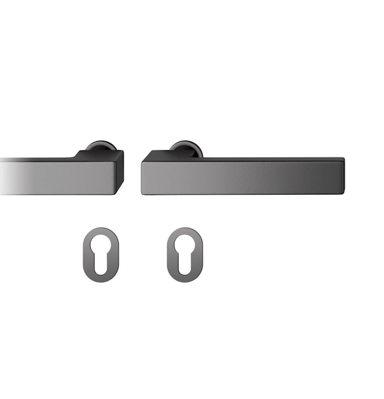 FSB Drückergarnitur 15 1183; Produkttyp: Drückergarnitur; Produkttyp (Hersteller): Steckgriff; Ausführung: Rosette; Befestigungsart Schlüsselrosette (außen): selbstklebend; Befestigungsart Schlüsselrosette (innen): selbstklebend; Befestigungstechnik: ohne Stütznocken; Montageart: aufliegend; Form Drückerrosette: rund; Form Schlüsselrosette (außen): oval; Form Schlüsselrosette (innen): oval; Vierkant: 8 mm; Material: Aluminium; Form Türgriff (innen): Design; Form Türgriff (außen): Design; Länge Türgriff (innen): 161 mm; Länge Türgriff (außen): 161 mm; Höhe Türgriff (innen): 49 mm; Höhe Türgriff (außen): 49 mm; Durchmesser Drückerrosette (außen): 30 mm; Durchmesser Drückerrosette (innen): 30 mm; Höhe Drückerrosette (außen): 2 mm; Höhe Drückerrosette (innen): 2 mm; Breite Schlüsselrosette (außen): 30 mm; Breite Schlüsselrosette (innen): 30 mm; Länge Schlüsselrosette (außen): 46 mm; Länge Schlüsselrosette (innen): 46 mm; Höhe Schlüsselrosette (außen): 2 mm; Höhe Schlüsselrosette (innen): 2 mm; Einsatzbereich: Objekttür; Türart: Rohrrahmen,Vollblatt; Türwerkstoff: Holz,Kunststoff,Aluminium,Stahl; Lochung: Profilzylinder gelocht; DIN-Richtung: DIN Links-Rechts; Farbe: schwarz; Farbton: tiefschwarz; Farbe (RAL): ähnlich RAL 9005; Oberfläche: farbig kunststoffbeschichtet; Material Unterkonstruktion (Schlüsselrosette): Kunststoff-Edelstahlverbundbau; Ausführung Vierkant: Vierkantstift; Design Türdrücker: Hadi Teherani; Türstärke min.: 39 mm; Türstärke max.: 48 mm