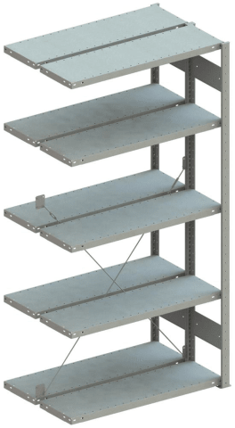 Steckregal META CLIP, Fachlast 150 kg, doppelseitig, verzinkt • Oberfläche: sendzimirverzinkt • Regalrahmen: vorgefertigte, komplett geclinchte • Raster Höhenverstellung: 25 mm • Aussteifung: Kreuzstrebe • Systemlochung im Fachboden: vorhanden (50-mm-Raster) • Doppelseitig nutzbar • Schneller Zugriff, Rücken-an-Rücken-Aufbau • Schnelle und einfache Montage Hinweis: Feldlastangaben gelten für Regalzeilen mit 3 und mehr Feldern. Planmaße: Grundregal: Nennlänge + 56 mm, Nenntiefe + 36 mm. Anbauregal: Nennlänge + 6 mm, Nenntiefe + 36 mm.