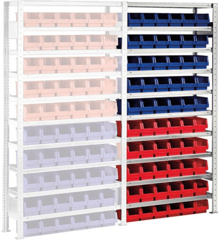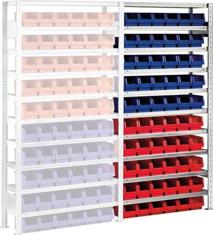 META Steckregal Meta-CLIP B1000xT300xH2000 mm Anbaufeld 10 Böden vzk Fachlast 100kg 60 Kästen