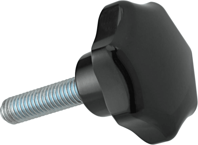 Sterngriff, Form • Form L Gewindestift Stahl, verzink • Glänzen • Norm: DIN 633 • Material: Duroplast PF 3 • Farbe: schwarz