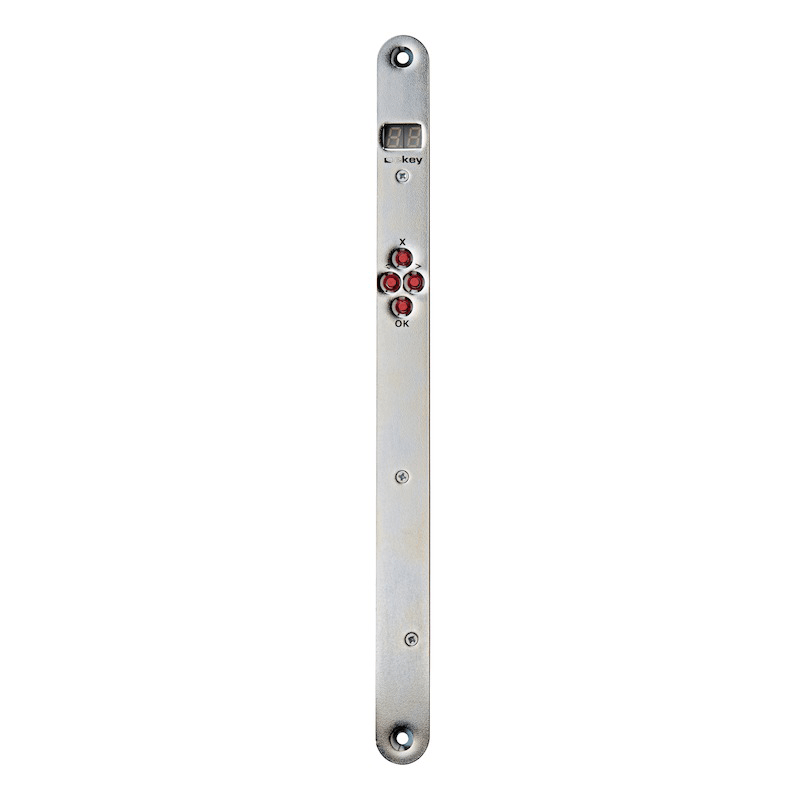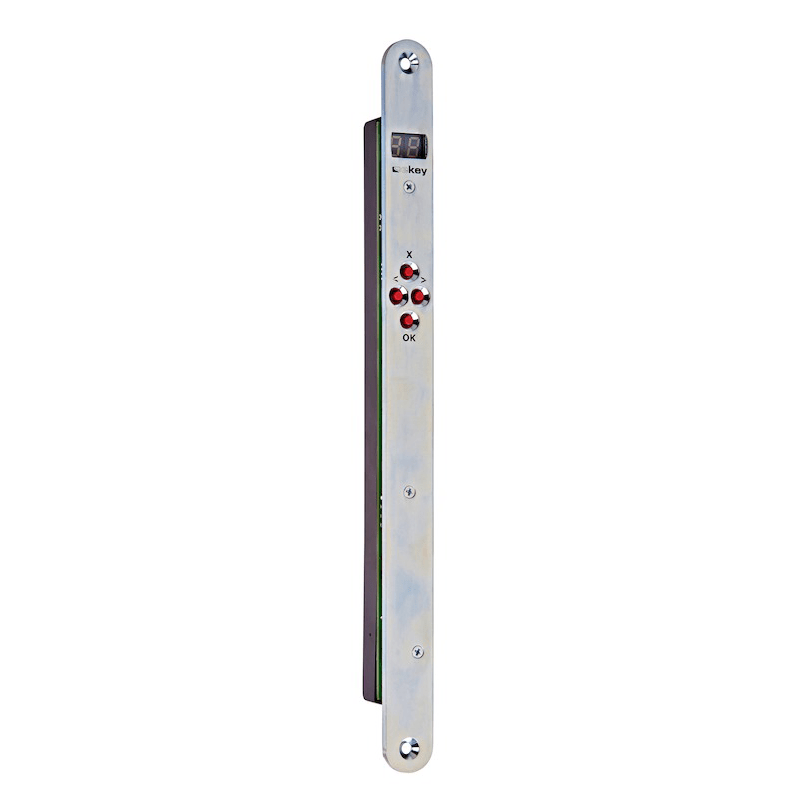 Eigenschaften • Abmessungen Gehäuse B x H x T: 18(20, 24) x 272 x 21 mm • Leistungsaufnahme: ca. 1 W • Versorgungsspannung: 8-24 VDC • Temperaturbereich: -20°C bis 70°C • Schutzart: IP40 • Relais: 1 oder 2 Relais • max. Relaisspannung, -strom: 42V/2A • Anzeige/Display: 2-stellige Siebensegment anzeige • Bedienung: 4 Tasten • Funktionen: Nutzer aufnehmen, Nutzer einzeln löschen, Relaiszeiten einstellbar (0-99s), Code