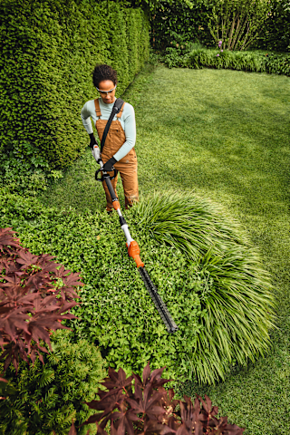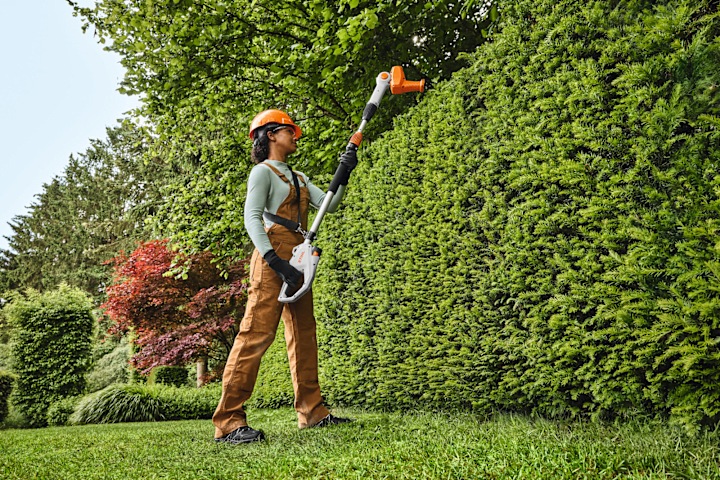 Der kompakte, leichte Akku-Heckenschneider STIHL HLA 40 mit Teleskopschaft und verstellbarem Messerbalken ist ideal für das Schneiden höherer Hecken, Sträucher und Büsche sowie von Bodendeckern und Ziergehölzen im privaten Umfeld. Er arbeitet dabei mit leistungsfähigen Lithium-Ionen-Akkus aus dem STIHL AS-System. Der Motor des STIHL HLA 40 ist so geräuscharm, dass Sie den Heckenschneider auch ohne einen Gehörschutz und in lärmsensiblen Bereichen verwenden können.