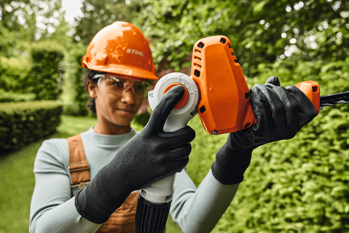 Mit dem ergonomisch optimierten Bediengriff mit Softgrip-Oberflächen haben Sie alle Bedienelemente sicher in der Hand. Der Rundumgriff und der werkzeuglos einstellbare Teleskopschaft unterstützen zusätzlich die einfache Handhabung des Akku-Heckenschneiders STIHL HLA 40. Für ein komfortables, flexibles Arbeiten lässt sich der zum Lieferumfang gehörende Schultergurt an einer Aufhängeöse am Schaft und am Gerät schnell ein- oder ausklinken.