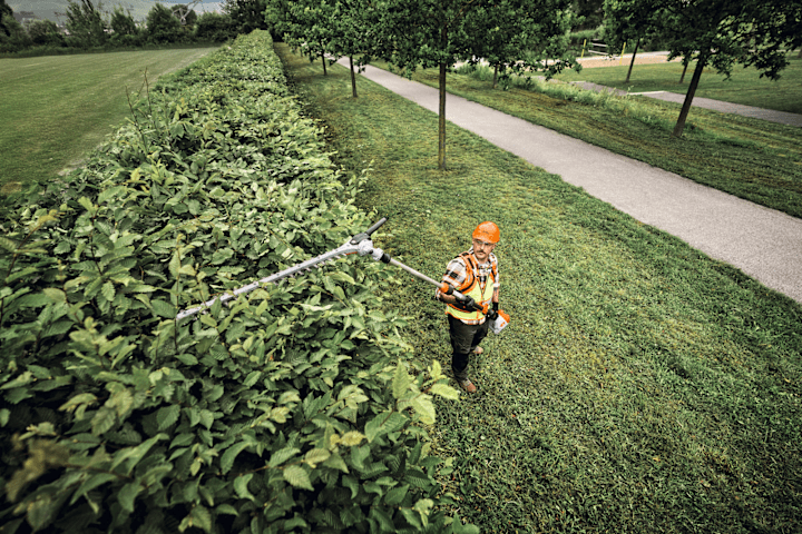 Mit dem robusten Akku-Heckenschneider STIHL HLA 150 B aus dem STIHL AP-System bekommen Sie eine effektive Unterstützung für die professionelle Garten- und Landschaftspflege. Dabei sorgt der werkzeuglos verstellbare Teleskopschaft für mehr Reichweite. So können Sie bei Arbeiten in der Grünpflege, in Straßenmeistereien und bei Kommunen mit dem Akku-Heckenschneider STIHL HLA 150 B auch sehr hohe Hecken und Sträucher effizient schneiden. Die Universalmesser des HLA 150 B sind optimal geeignet für den Form-, Trimm- und Rückschnitt. Der sehr leistungsstarke STIHL Akku-Heckenschneider hat ein geringes Gewicht und arbeitet geräuscharm, sodass Sie ihn auch ohne Gehörschutz und in lärmsensiblen Bereichen wie in Wohngegenden verwenden können.