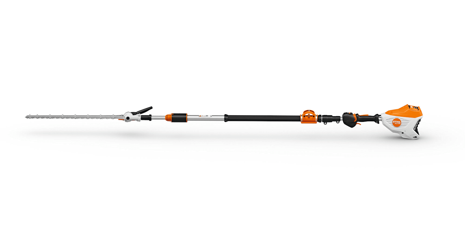 An der zum Lieferumfang gehörenden HT-Klammer für Teleskopschaft lassen sich ein Einfachschultergurt oder das als Zubehör erhältliche Gurtsystem Set STIHL ADVANCE X-TREEm HT schnell ein- oder ausklinken. Das ermöglicht ein komfortables, flexibles und effizientes Arbeiten. Durch den um 145° verstellbaren Messerbalken lassen sich auch Kopf-, Seiten- und Bodenschnitte mit dem insgesamt bis zu 330 cm langen Gerät bequem ausführen. Um den Akku des STIHL HLA 150 B bei Bodenkontakt vor Schmutz und Feuchtigkeit zu schützen, können Sie den STIHL Standfuß HTA 135 oder HLA 135 nachrüsten.