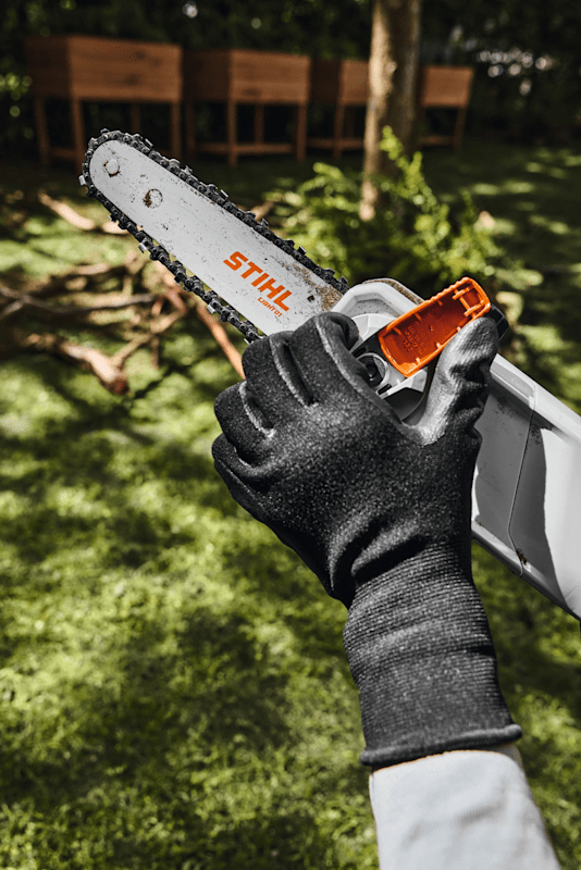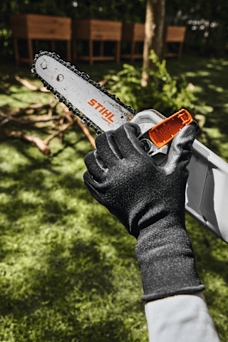 Der Elektromotor ist vibrationsarm und arbeitet leise, sodass Sie Ihre Pflegearbeiten ohne Gehörschutz und auch in lärmsensiblen Bereichen erledigen können. Dabei bietet der besonders kompakt und schlank gestaltete Schneidkopf eine gute Einsehbarkeit der Schiene beim Setzen von Schnitten und eine hohe Agilität beim Manövrieren in engen Arbeitssituationen im Baum. Für ein sauberes Schnittbild und einen schnellen Arbeitsfortschritt ist der HTA 30 mit einer STIHL 1/4"-PM3-Sägekette und einer STIHL Führungsschiene Light 01 ausgestattet. So lassen sich Äste bis zu 17 cm Durchmesser sauber und bequem schneiden.