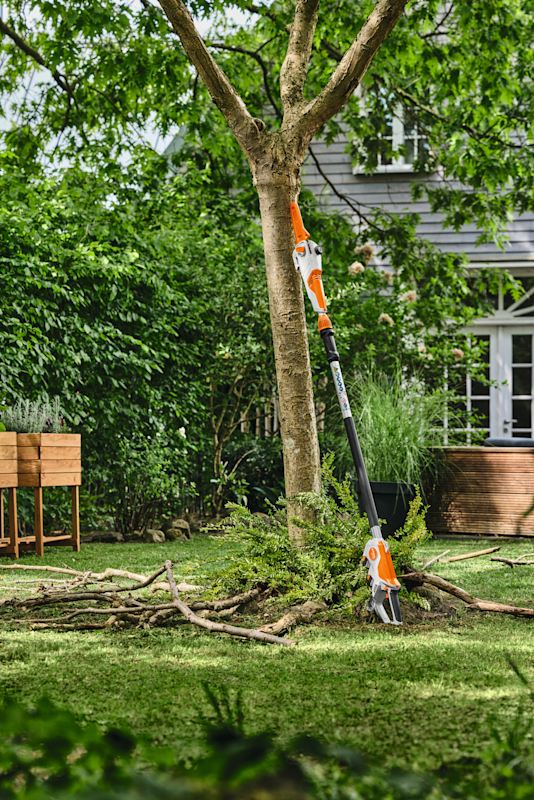 Akku-Hochentaster HTA 30 im Set mit 2 Akkus AS 2 und Ladegerät ALS 31: Mit Teleskopschaft und automatischer Kettenspannung – für eine effiziente und komfortable Baumpflege auf privaten GrundstückenWen