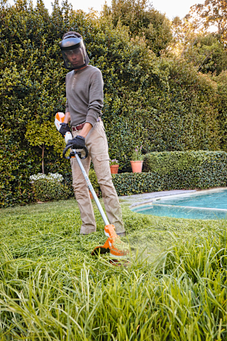 Kompakt gebaut und gut ausbalanciert, ermöglicht die STIHL FSA 110 R dank Rundumgriff mit Softkomponente ein flexibles Arbeiten mit viel Bewegungsfreiheit. Das zeigt sich insbesondere bei Ausputzarbeiten auf engem Raum, wenn Sie zwischen Bäumen und Sträuchern sowie an anderen Engstellen mähen. Zudem ermöglicht der werkzeuglos einstellbare Rundumgriff eine einfache Einstellung auf Ihre Körpergröße, sodass Sie jederzeit eine ergonomische Arbeitshaltung haben.