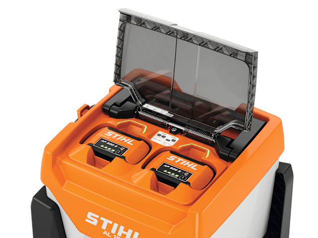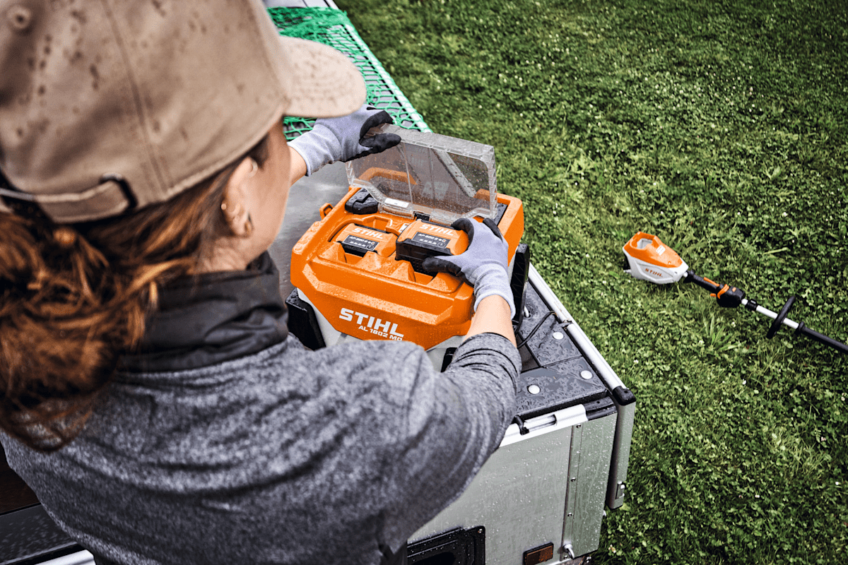 Das Schnellladegerät STIHL AL 1802 MO ist eine praktische Lösung, die sich ideal für Profis in der Garten- und Landschaftspflege, im Baugewerbe, in Kommunal- und Forstbetrieben sowie der Baumpflege eignet. Das STIHL AL 1802 MO verfügt über einen geprüften Spritzwasserschutz und kann deshalb bei bestimmungsgemäßen Gebrauch auch bei widrigen Wetterverhältnissen, beispielsweise bei Regen, im Freien verwendet werden. Es ermöglicht ein besonders schnelles Aufladen von 2 Akkus aus dem STIHL AP-System. Dabei besteht die Möglichkeit, einen Akku nach dem anderen oder beide Akkus gleichzeitig aufzuladen. So lassen sich Unterbrechungen beim Arbeiten mit Geräten aus dem AP-System zumeist vermeiden. Weitere Vorteile des STIHL AL 1802 MO sind neben der kurzen Ladedauer die aktive Kühlung der Akkus während des Ladevorgangs, ein sicherer Transport der Akkus und das Laden während der Fahrt. Nicht zu vergessen: die Verkürzung der täglichen Rüstzeit, da Akkus und Ladegerät bis zum nächsten Arbeitstag im Fahrzeug verbleiben können.