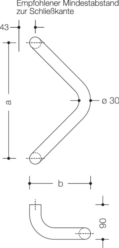 HEWI Stoßgriff ø30, A=300mm, matt-schliff