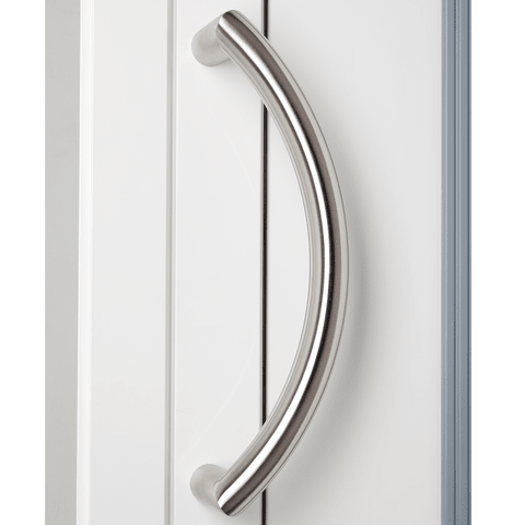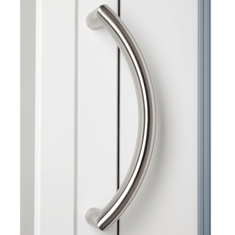 Stoßgriff aus Edelstahlrohr, in Segmentbogenform.