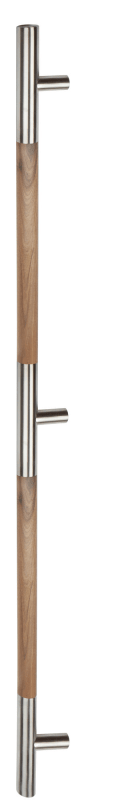 Stoßgriff Serie 8000 Holz Ø 30 mm, Länge 1500 mm, Achsmaß 1300 mm, 3 gerade Stützen, inkl. einseitiger Befestigung, Holzeinsatz 2 x 450 mm Länge, Oberfl. 60/EI (Edelstahl matt/Nussbaum natur)