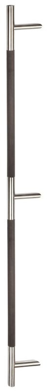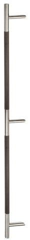 Stoßgriff Serie 8010 Holz Ø 30 mm, Länge 1600 mm, Achsmaß 1300 mm, 3 schräge Stützen, inkl. einseitiger Befestigung, Holzeinsatz 2 x 450 mm Länge, Oberfl. 60/EID (Edelstahl matt/Eiche dunkel geb.)